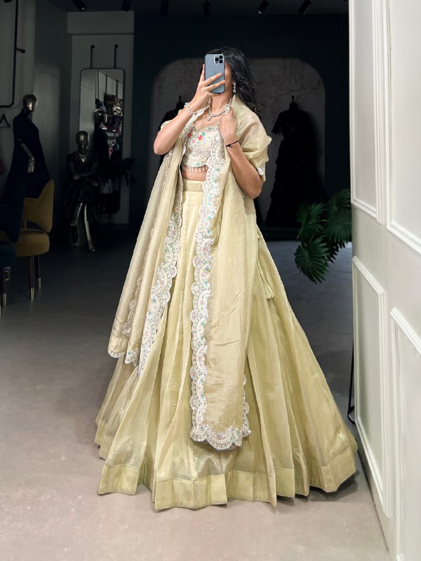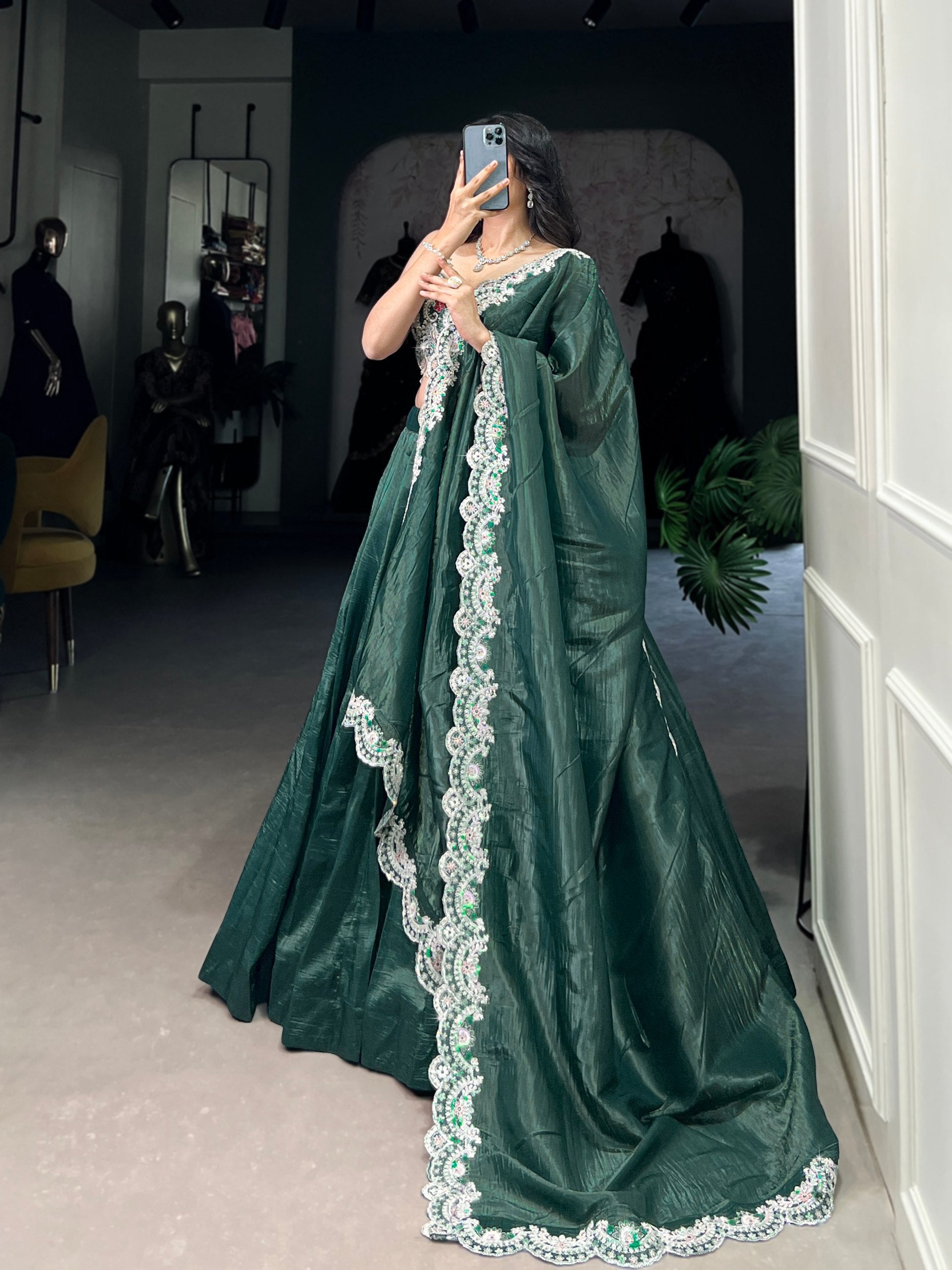 Pista Gold Crush Sequins Thread Diamond Worked Lehenga Choli -Wedding Wear